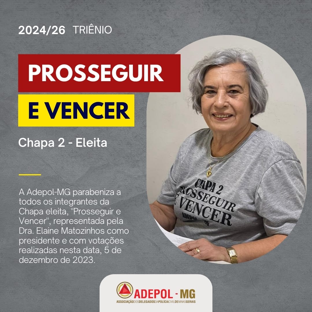 A Adepol-MG parabeniza os integrantes da Chapa 2, “Prosseguir e Vencer”, pela vitória da eleição do triênio 2024-26.