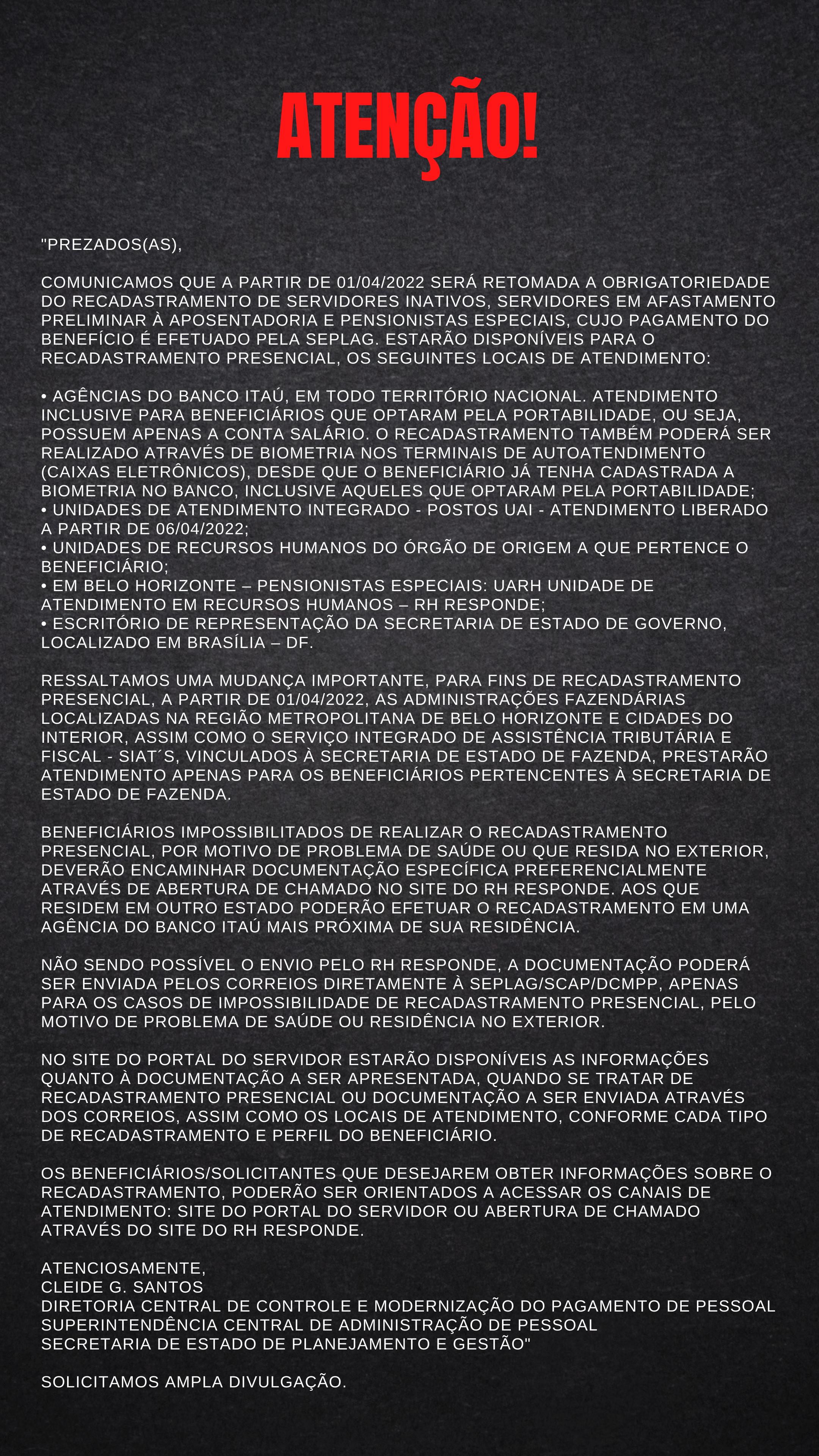 ATENÇÃO: Retomada do recadastramento anual