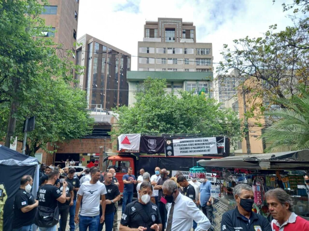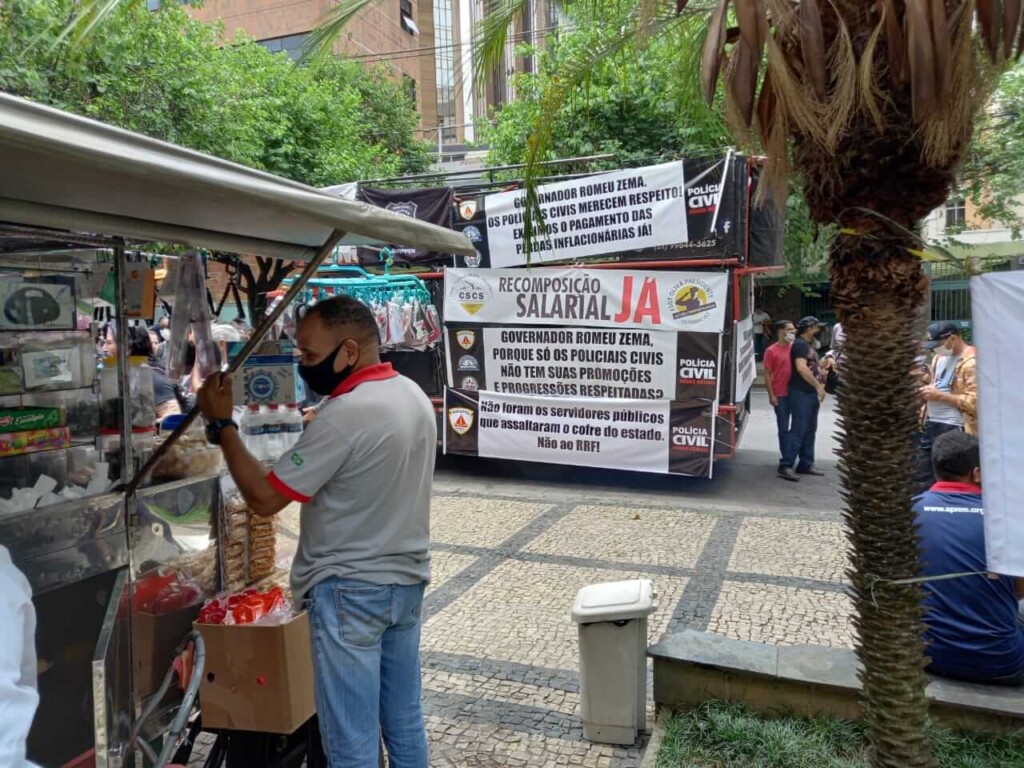 As entidades de classe da Segurança Pública do Estado protestaram na manhã de hoje (14), em frente à ALMG, contra o Regime de Recuperação Fiscal (PL 1.202/19), proposto pelo governador Romeu Zema, que tramita na casa legislativa.