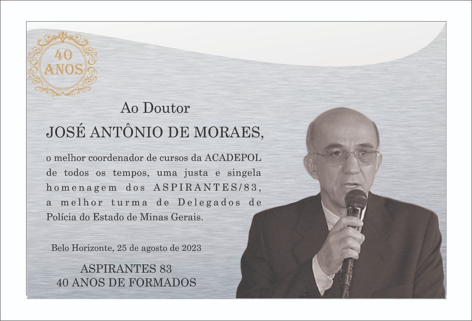 A ADEPOL-MG, parabeniza Dr. José Antônio de Moraes, nosso diretor patrimonial, pela justa homenagem, prestada pela turma de delegados de 1983.