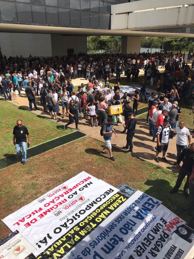 Sexta-feira, véspera de feriado, sol escaldante de 30º graus, convocação feita às 18h de ontem. Nada foi suficiente para impedir que os servidores da Segurança Pública manifestassem sua indignação com o governador Romeu Zema. Cerca de 6 mil servidores lotaram a Cidade Administrativa hoje de manhã e mandaram o recado ao governador e seus assistentes: “A POLÍCIA PAROU!”.