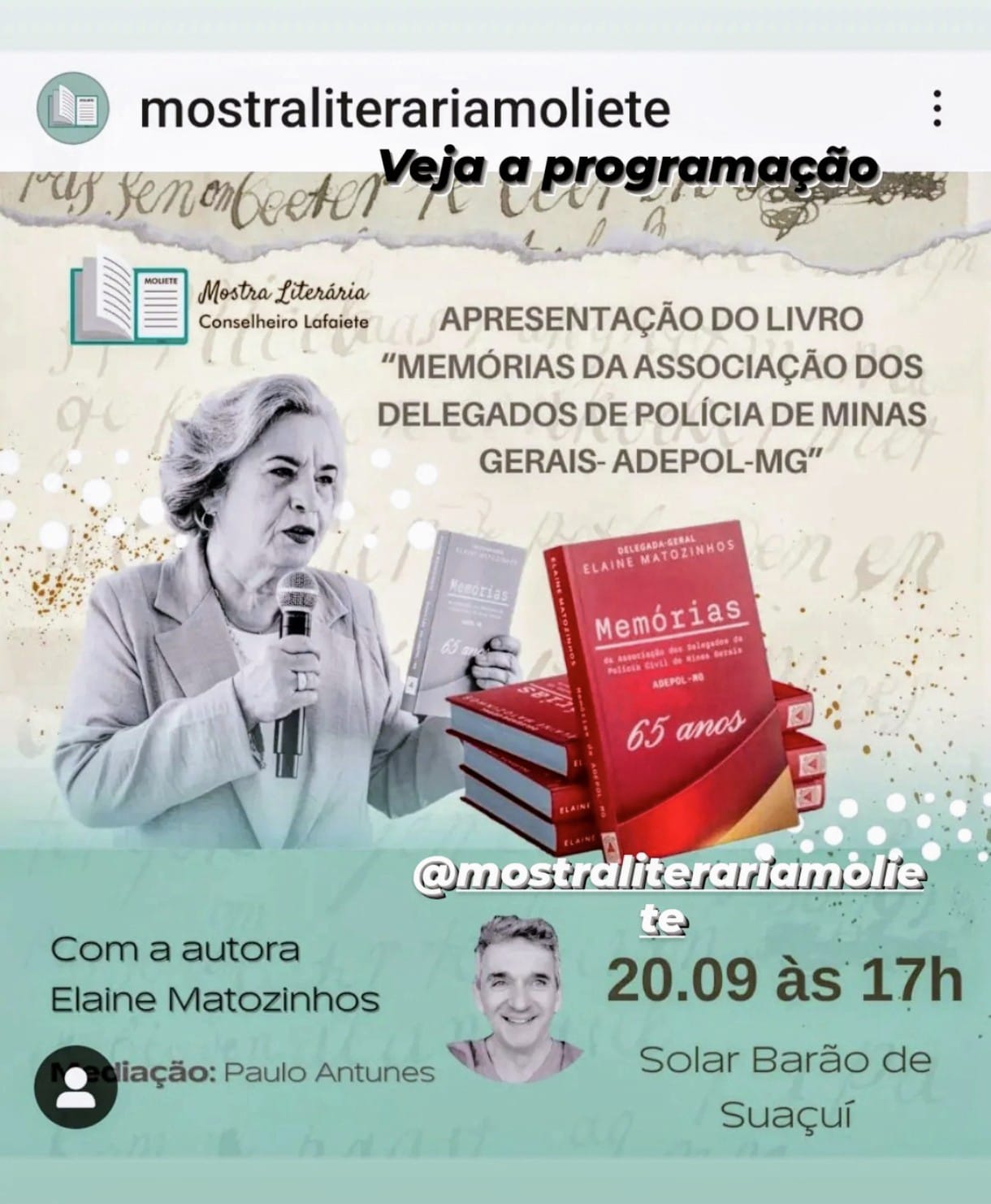 Entre os dias 20 e 22 de setembro, aconteceu a 4ª Mostra Literária de Conselheiro Lafaiete (MOLIETE), no Solar do Barão de Suaçuí,