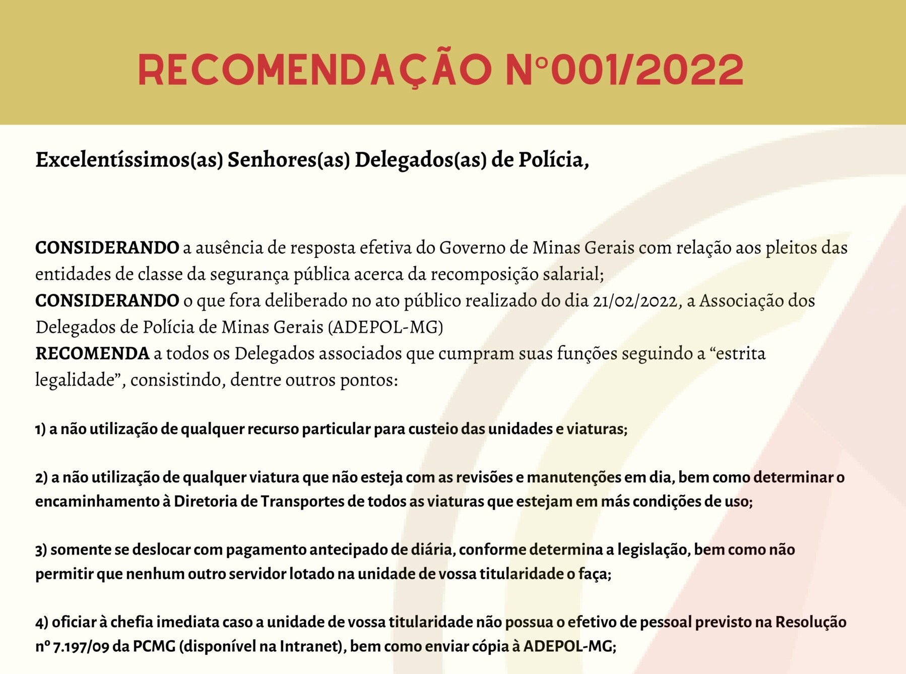 RECOMENDAÇÕES – “ESTRITA LEGALIDADE”