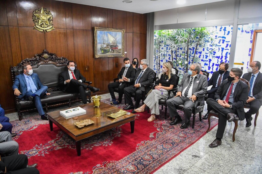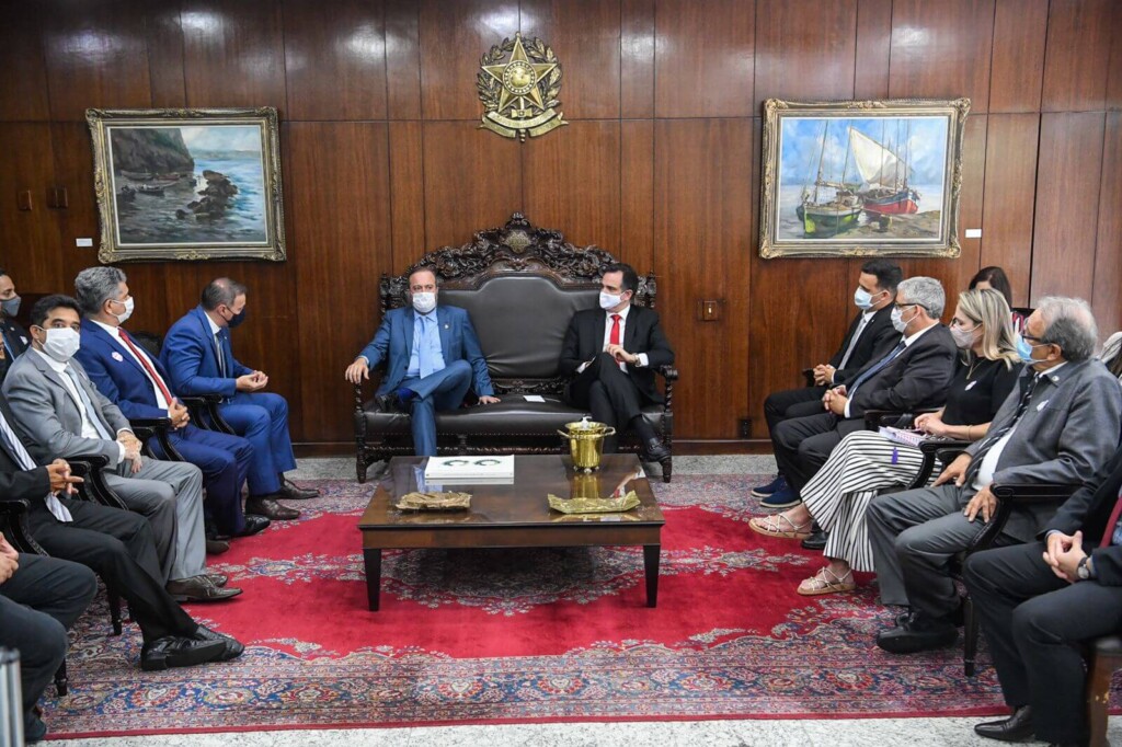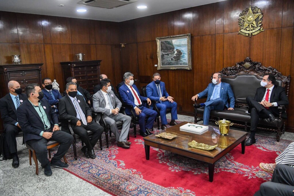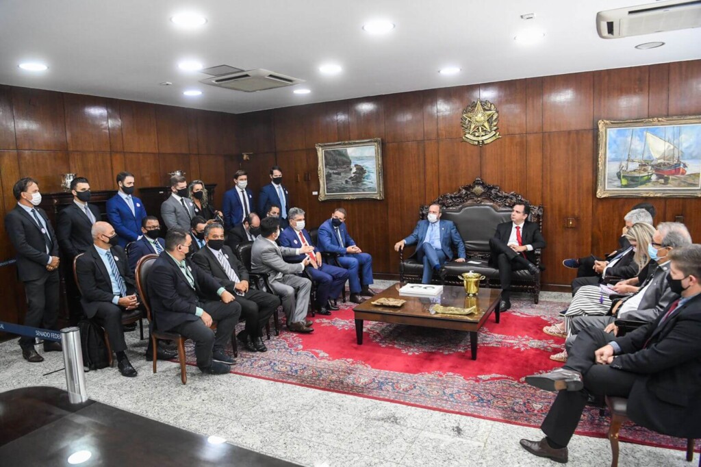 Deputados e Representantes das Entidades de Classe da Segurança Pública de Minas Gerais se reuniram hoje de manhã (09/02) com o Presidente do Senado, Rodrigo Pacheco, e com o Senador Alexandre da Silveira, relator do PLP 150/20, na Sala de Audiências da Presidência do Senado Federal.